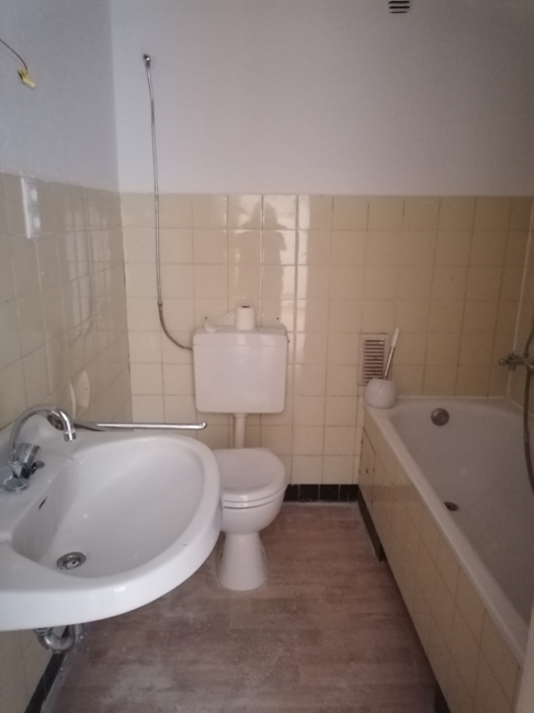 Die Wohnung verfügt über drei helle, gut geschnittene Zimmer, die flexibel genutzt werden können. Die Küche bietet ausreichend Platz für Ihre individuelle Einrichtung. Das Badezimmer ist funktional gestaltet. Große Fenster sorgen für viel Tageslicht und schaffen eine freundliche Wohnatmosphäre.
