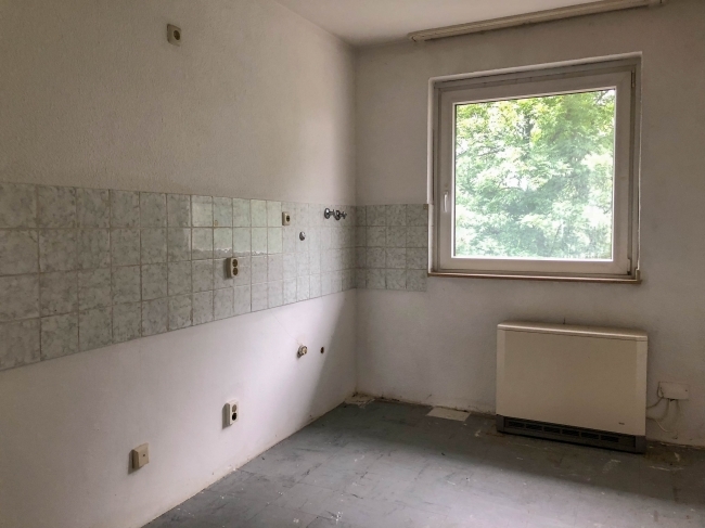 Die helle, gut geschnittene Wohnung ist einfach ausgestattet und befindet sich in einem renovierungsbedürftigen Zustand. Sie verfügt über eine großes Wohnzimmer, ein gepflegtes Wannenbad, Diele, ein gut geschnittenes Schlafzimmer und eine Abstellkammer.